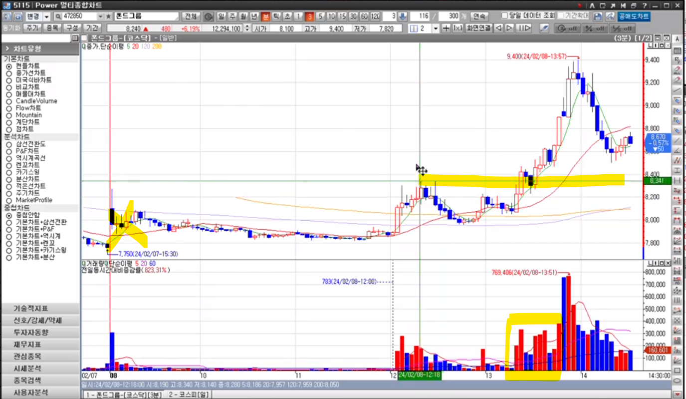 물론 후반에 오르긴 했는데 아깝지 않음12시, 2시까지 기다린다? 그건 아니라고 봄오히려 손절하고 지켜보다가 8,300원 고점을 돌파하고 돈 들어오는 모습을 보고 다시 매수하는 게 맞음트레이더라면 이렇게 대응해야 함. 종가베팅은 다음날 대응하려고 하는 거임