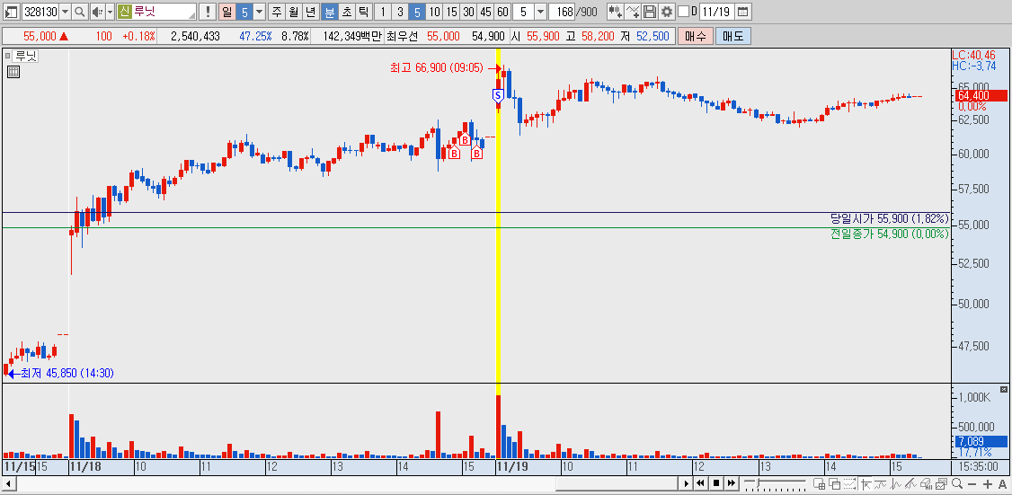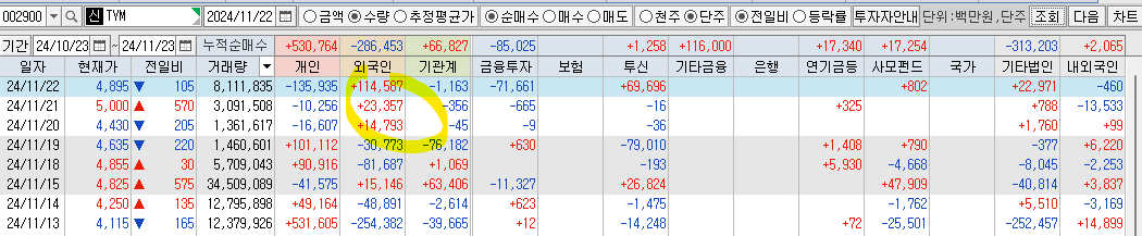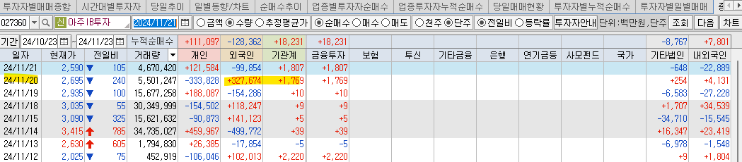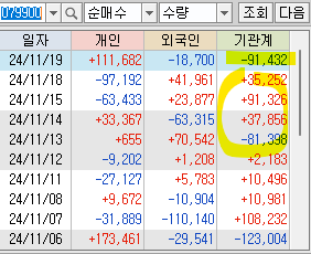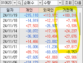 기관이 매수하다가 갑자기 대량으로 팔아서 11/19 시간외에서 손절했습니다.